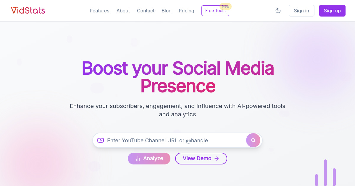 The idea for VidStats.pro was born out of a personal pain point. As a budding content creator myself, I found existing YouTube analytics tools either too complex or lacking in actionable insights. I thought, "What if there was a tool that could not only provide comprehensive analytics but also offer AI-powered suggestions for channel growth?" This question set me on the path to creating VidStats.pro.